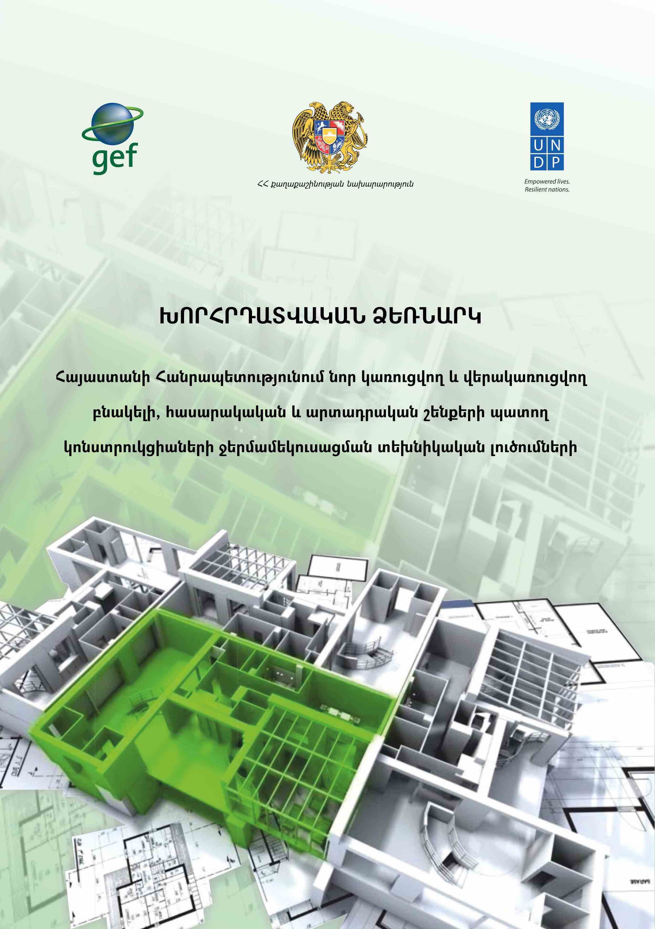 «Հայաստանի Հանրապետությունում նոր կառուցվող և վերականգնվող բնակելի, հասարակական և արտադրական շենքերի պատող կոնստրուկցիաների ջերմամեկուսացման տեխնիկական լուծումների խորհրդատվական ձեռնարկը» մշակվել է Ծրագրի շրջանակներում և հավանության է արժանացել ՀՀ քաղաքաշինության նախարարի 2013թ. նոյեմբերի 6-8 թիվ 343 հրամանով, ինչպես նաև առաջարկվել է կիրառության նախագծային և շինարարական աշխատանքներում: